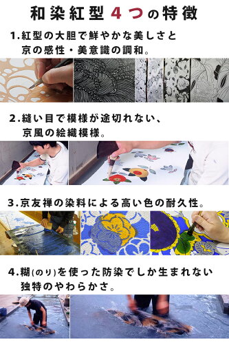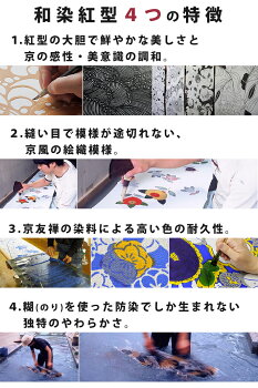 和染紅型の特徴 1. 紅型の大胆で鮮やかな美しさと京の完成・美意識の調和。