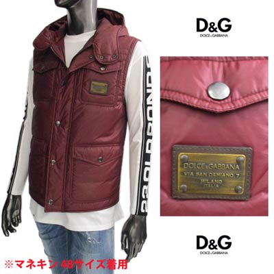 ドルチェ&ガッバーナ DOLCE&GABBANA メンズ アウター ジャケット ダウン ダウンベスト ロゴ チェスト部分ロゴプレート・フード付きダウンベスト ワインレッド G9L47T FUMN4 R5515 (R72000) 11A 【送料無料】 【smtb-TK】