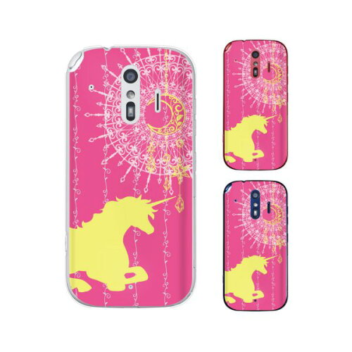 docomo ケース 【らくらくスマートフォン F-42A / me F-01L / me F-03K / 4 F-04J / 3 F-06F / 2 F-08E】 ユニコーンと月 レース ピンク ネオンカラー オシャレ ハード ドコモ スマホケース