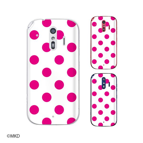 docomo ケース 【らくらくスマートフォン F-42A / me F-01L / me F-03K / 4 F-04J / 3 F-06F / 2 F-08E】 水玉mkd ピンク × ホワイト ドット かわいい ハードケースカバー ドコモ スマホケース